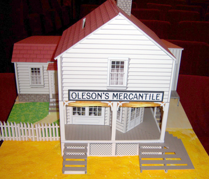Cette grande maquette était utilisée comme une boîte aux lettres. Les gens du public pouvaient écrire des questions sur des feuilles de papier et glissaient ces papiers dans la maquette du magasin / This huge model was used as a mail-box during the show. People from the audience would write questions on papers and would slip the papers inside the “Mercantile”