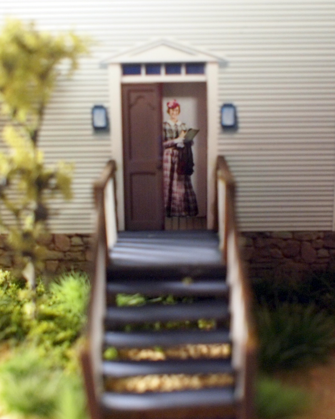 “Miss Wilder” est visible sur le seuil de l’école – Miss Wilder can be seen on the doorstep.