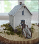 I made this model of the schoolhouse for Charlotte Stewart (“Miss Beadle”). I gave it to her in August 2024. Charlotte was the first actress I gave a miniature in July 2005… She deserved a much better one !